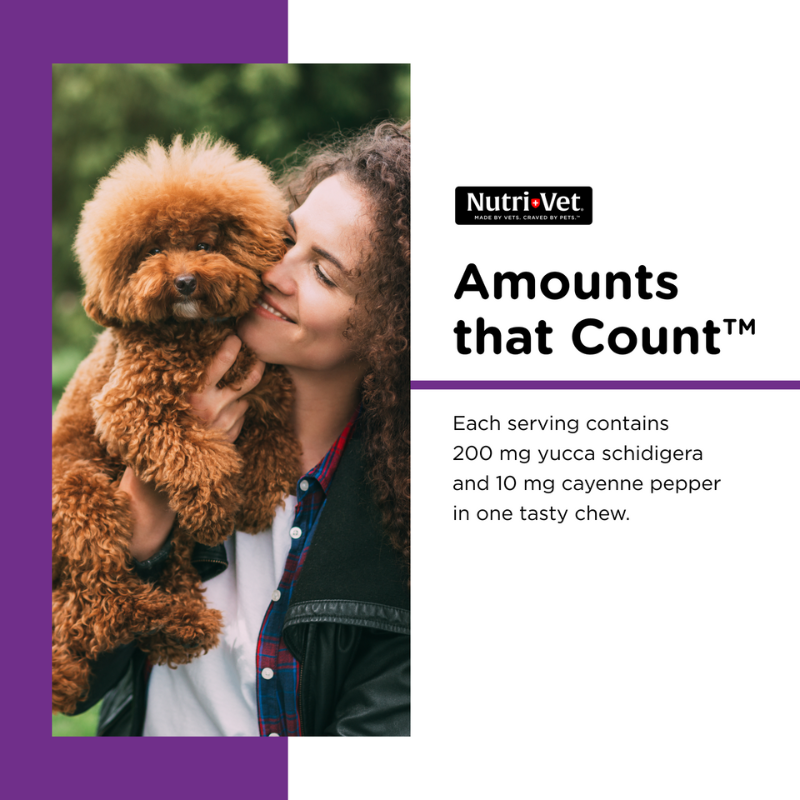 Las tabletas masticables Nutri-Vet Nasty Habit™ para perros son una solución efectiva diseñada para ayudar a los perros adultos y cachorros a dejar el mal hábito de comer heces. Formulados por veterinarios, estos masticables con sabor a hígado son fáciles de disfrazar en la comida favorita de su perro.
